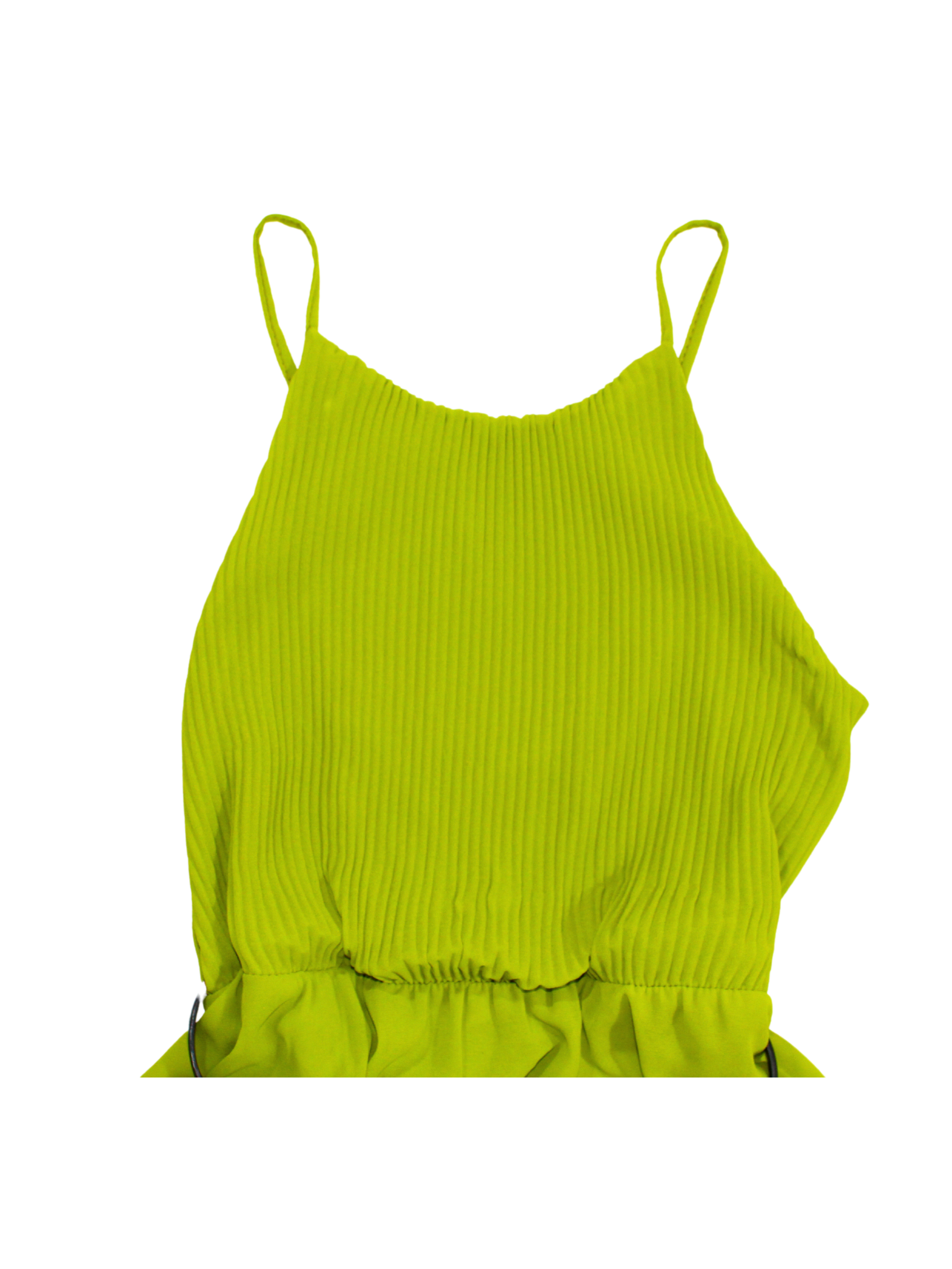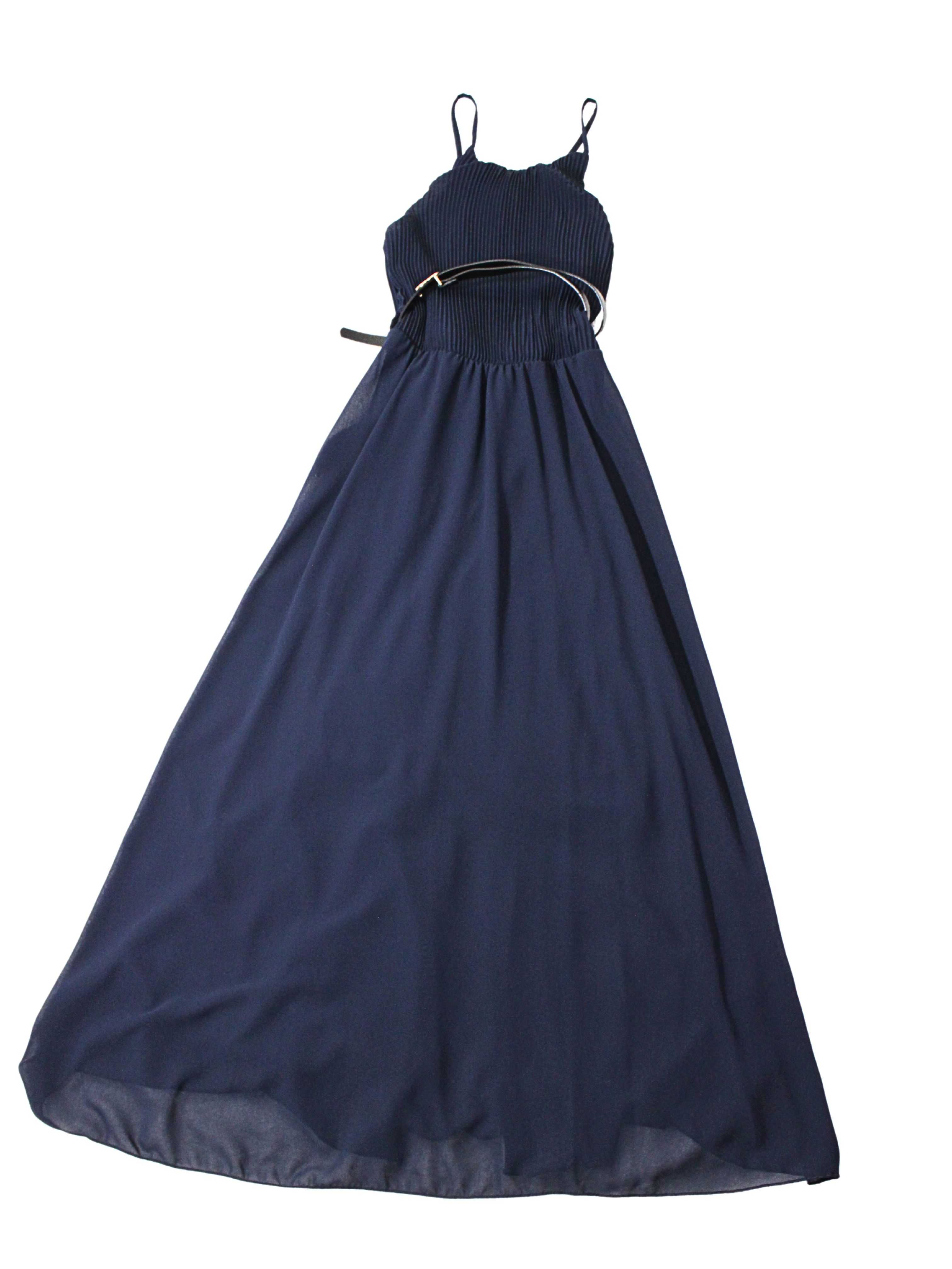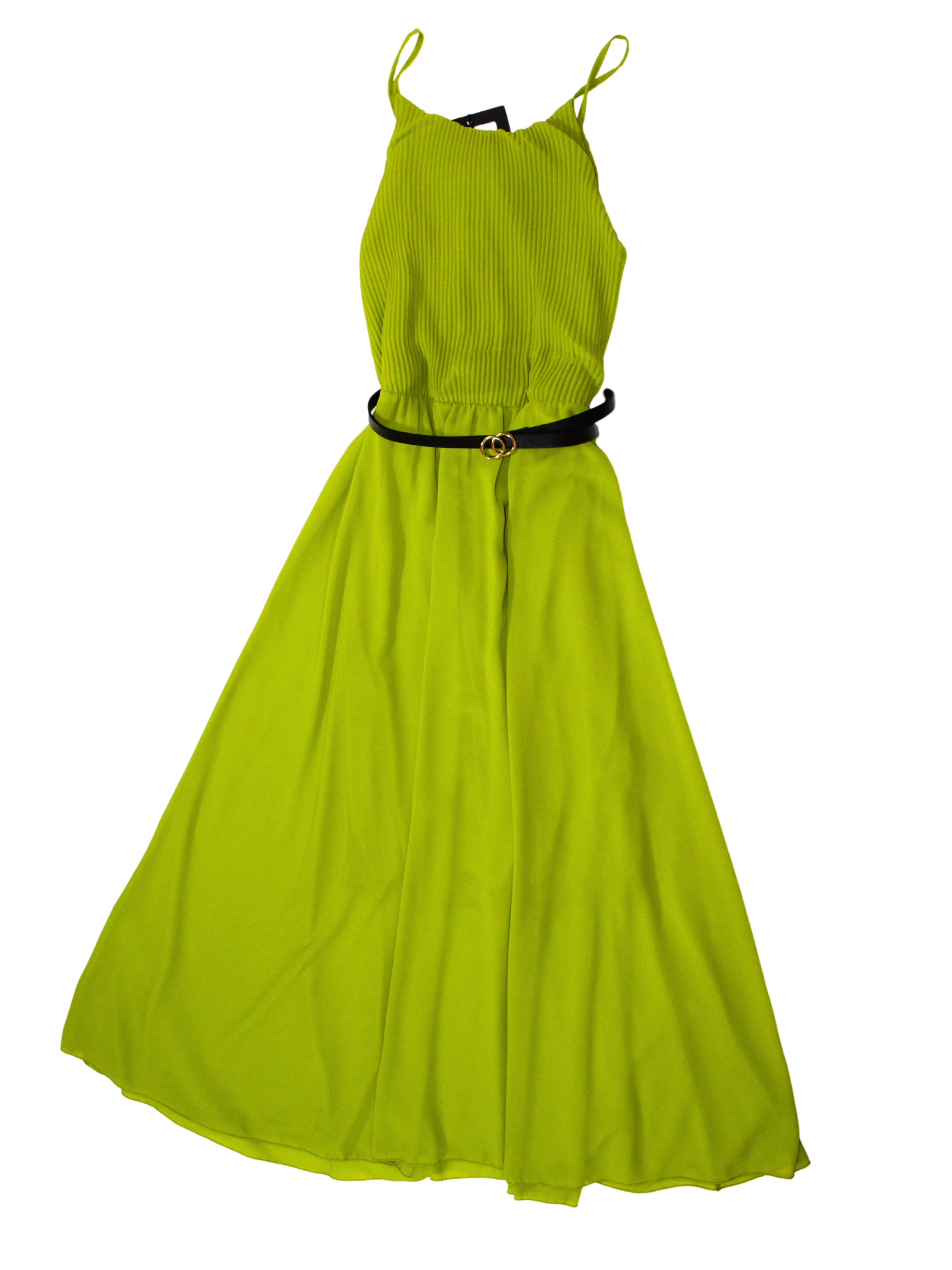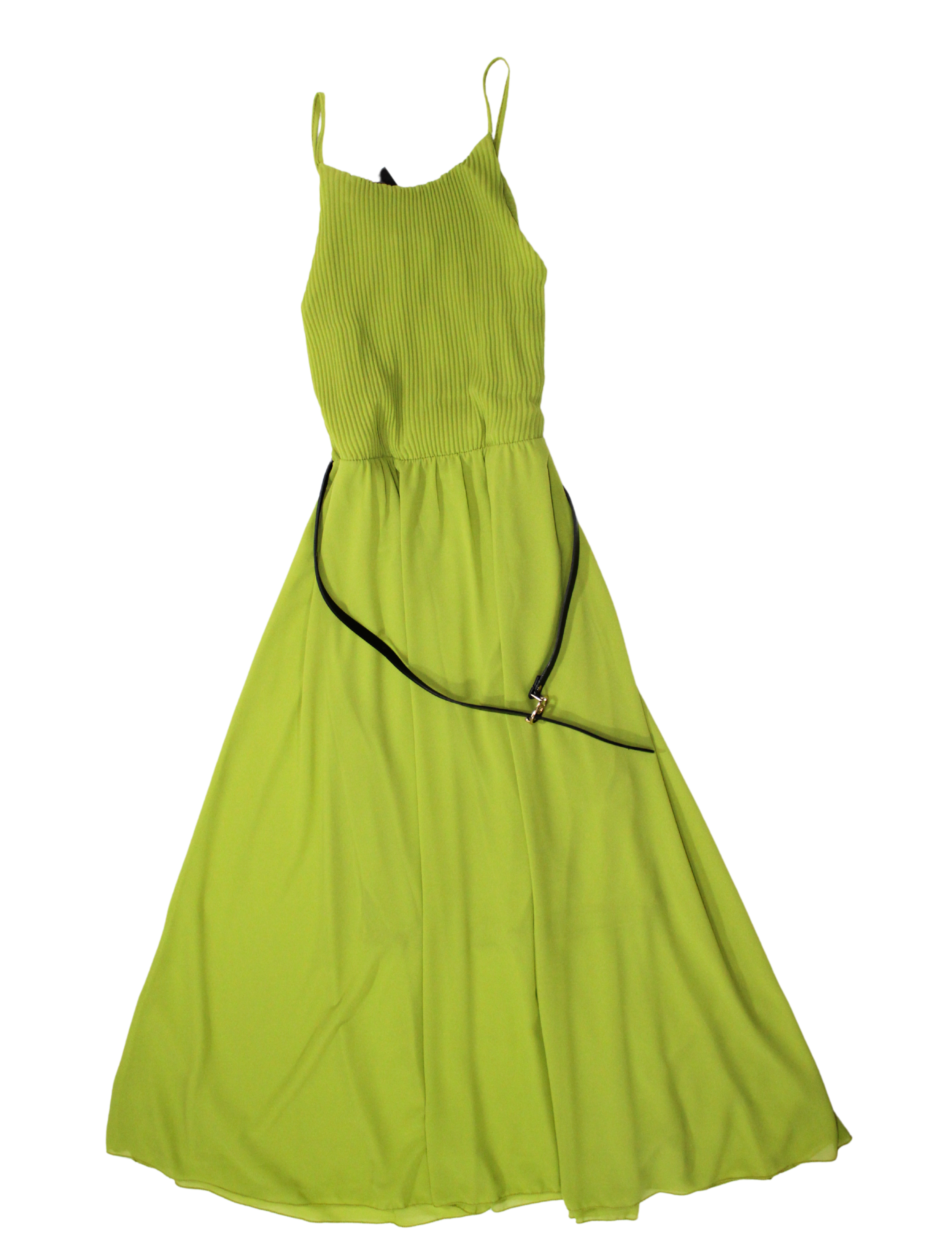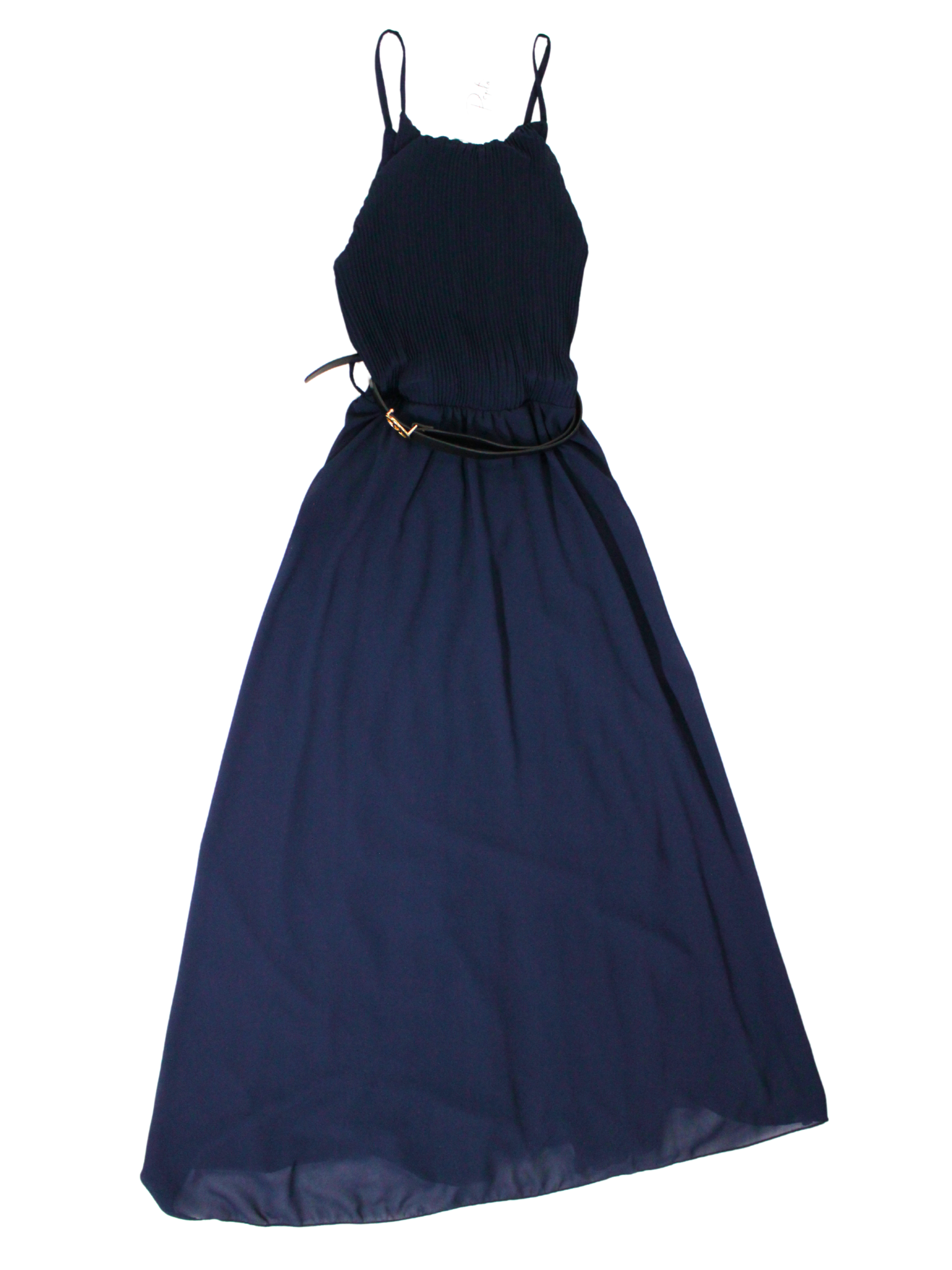 Abito Longuette con corpetto plissettato e spallina sottile. La gonna è svasata e ha una cintura in vita regolabile.