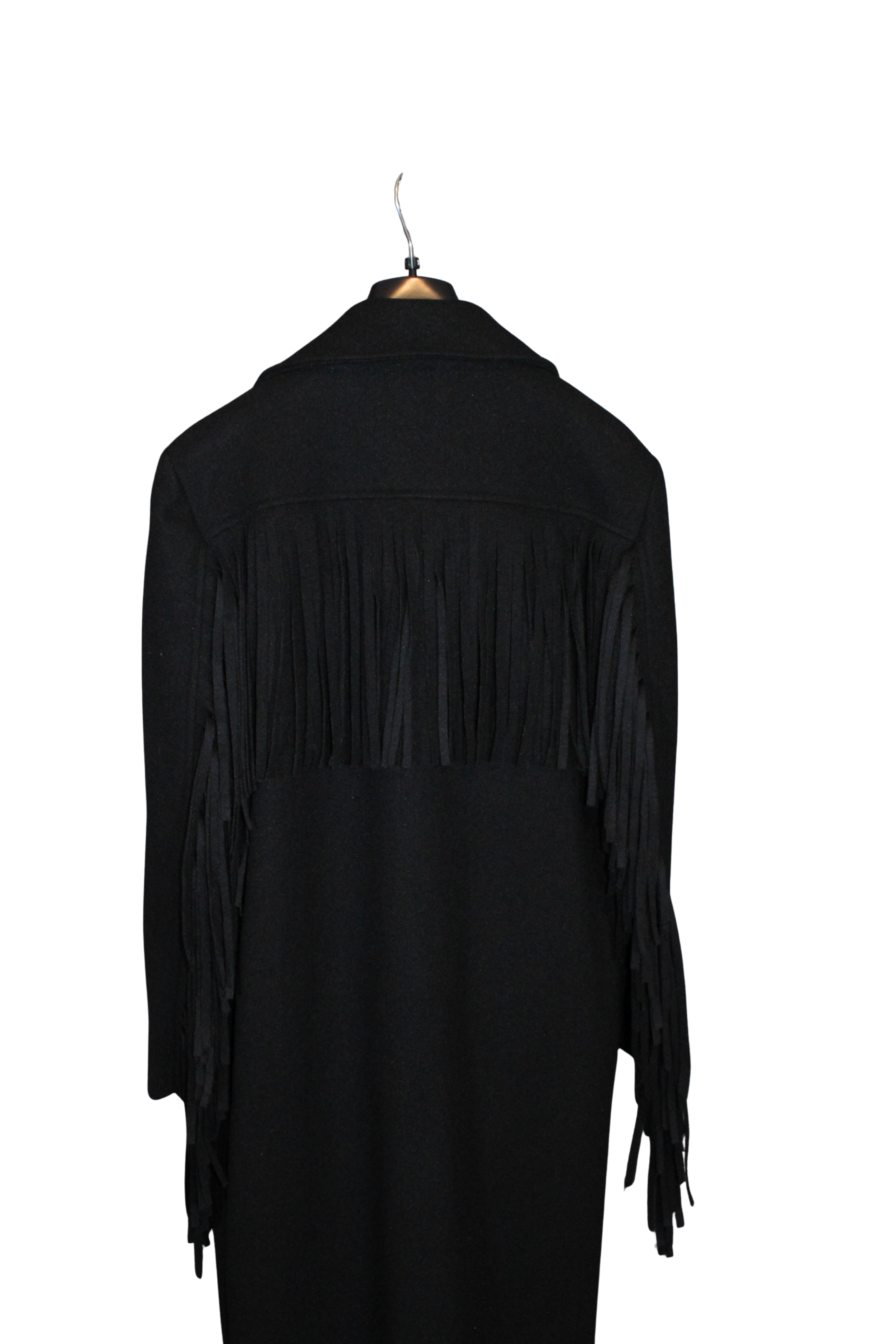 Questo cappotto donna con frange unisce design sofisticato e comfort quotidiano in un capo unico. Con una silhouette lunga e una vestibilità raffinata, è pensato per accompagnarti con stile e versatilità sia nei look casual di tutti i giorni sia in quelli più curati. Le frange ispirate allo stile western sulla schiena e sulle maniche aggiungono movimento e carattere, trasformando un classico cappotto in un pezzo distintivo del guardaroba femminile.