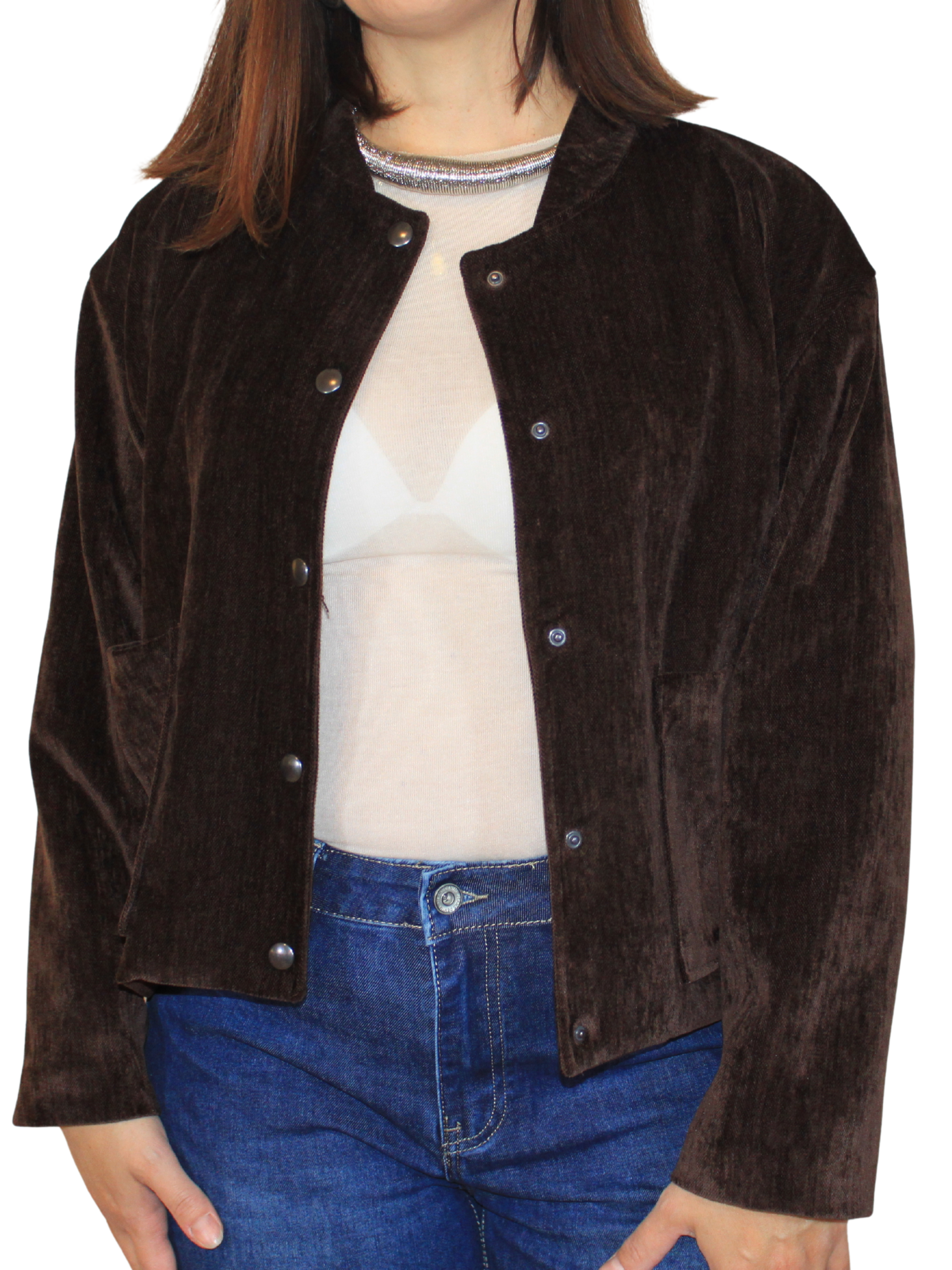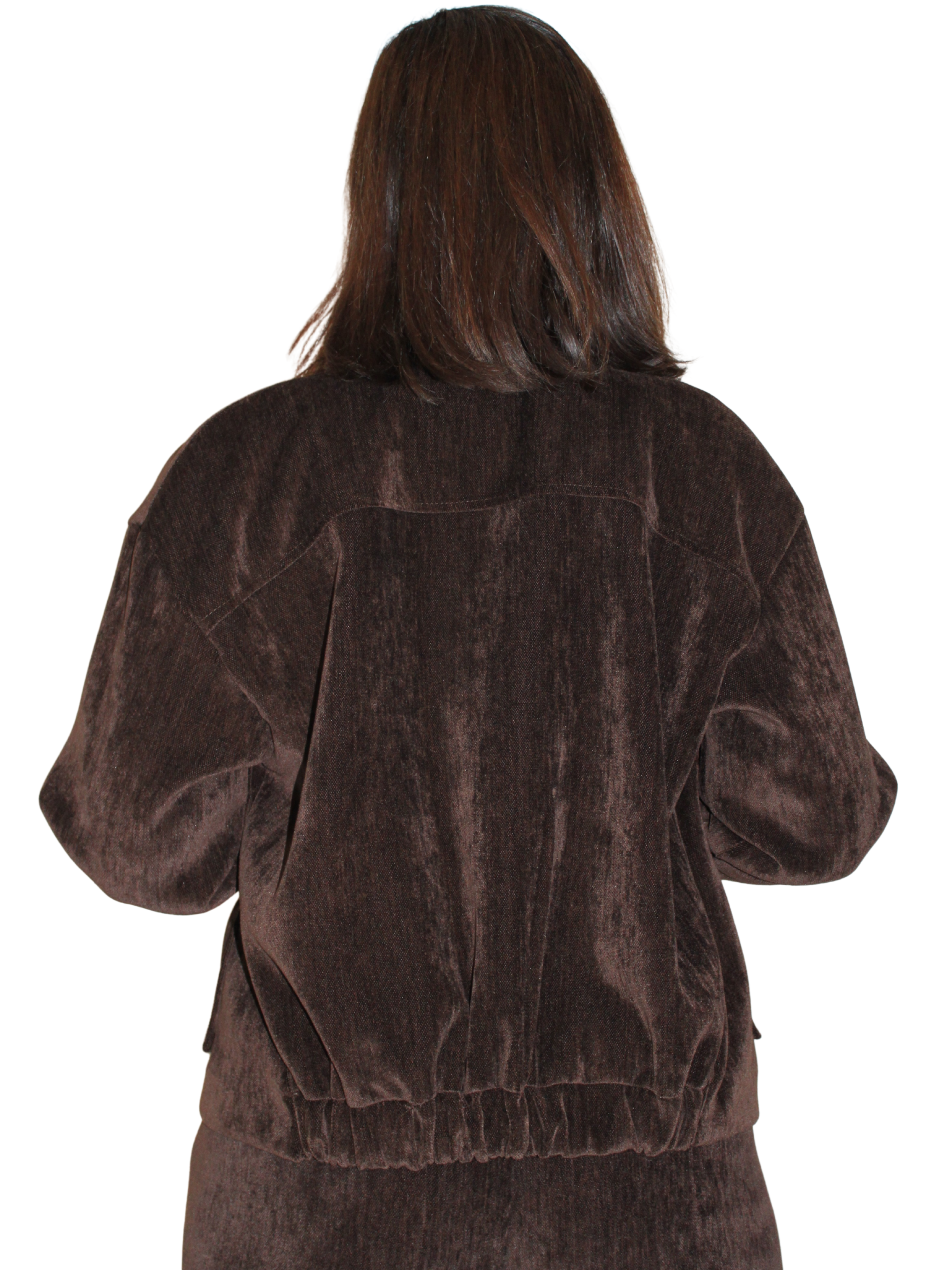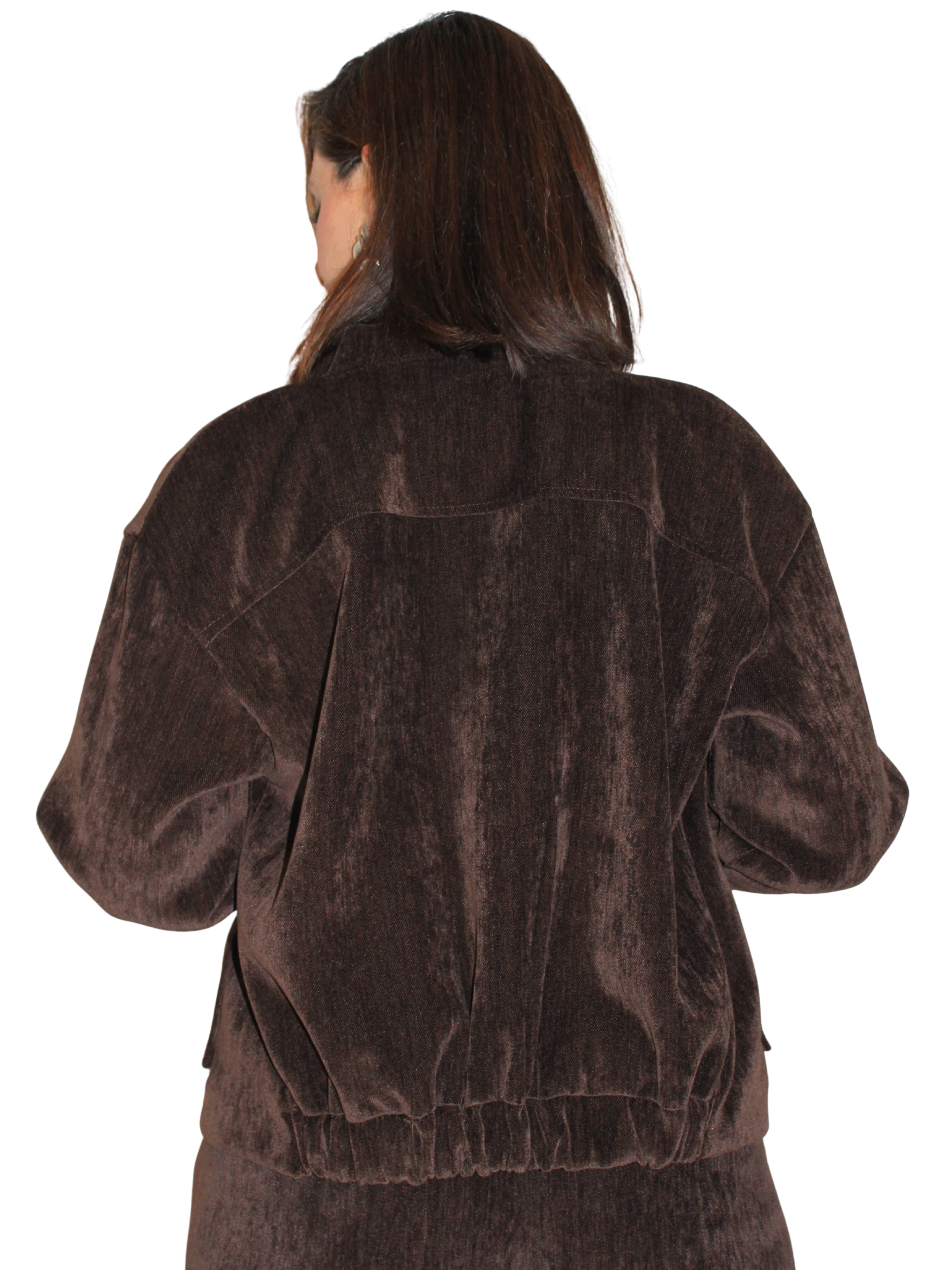 Giacca stile bomber con tessuto effetto velluto e coulisse sul retro.