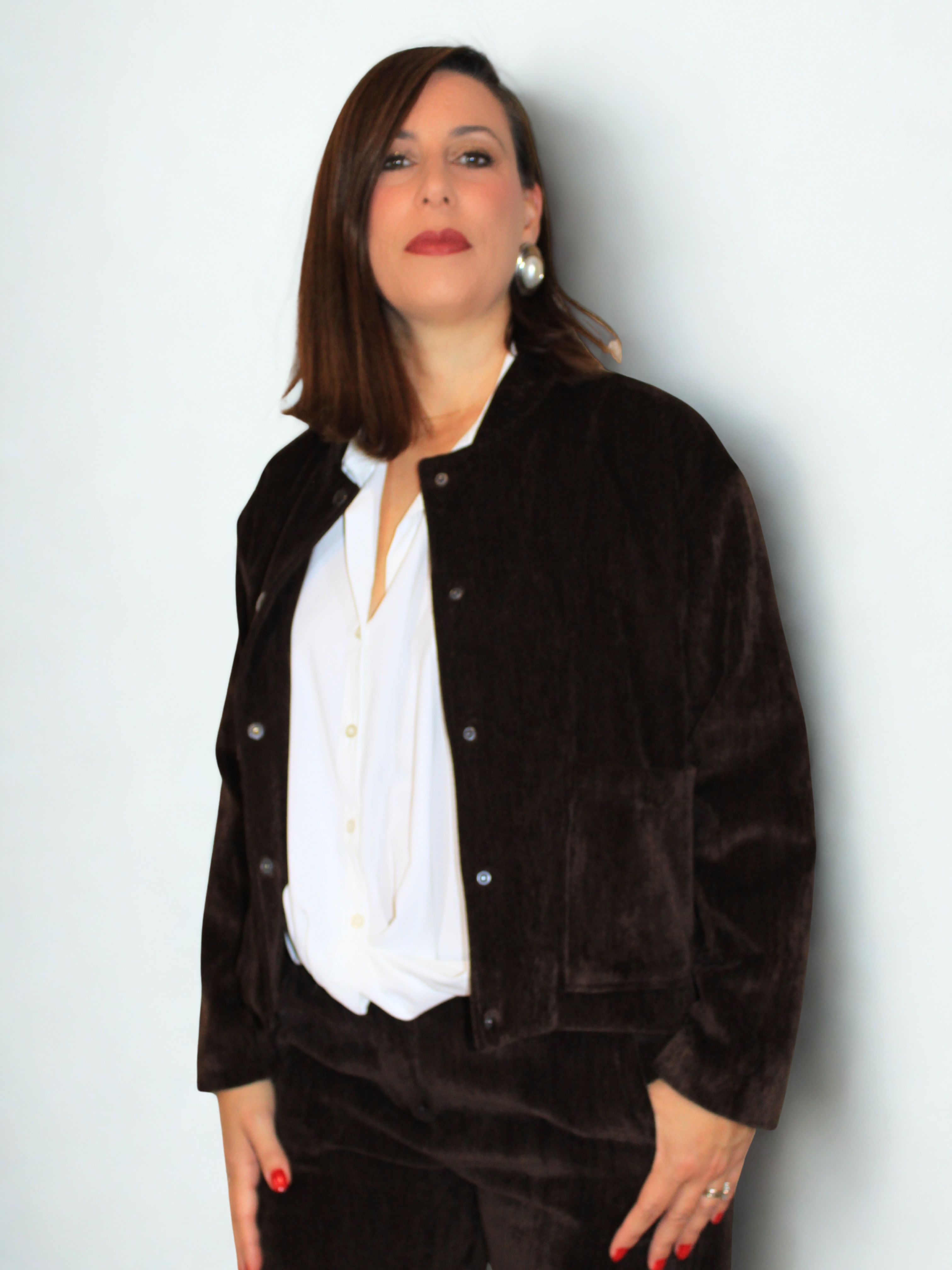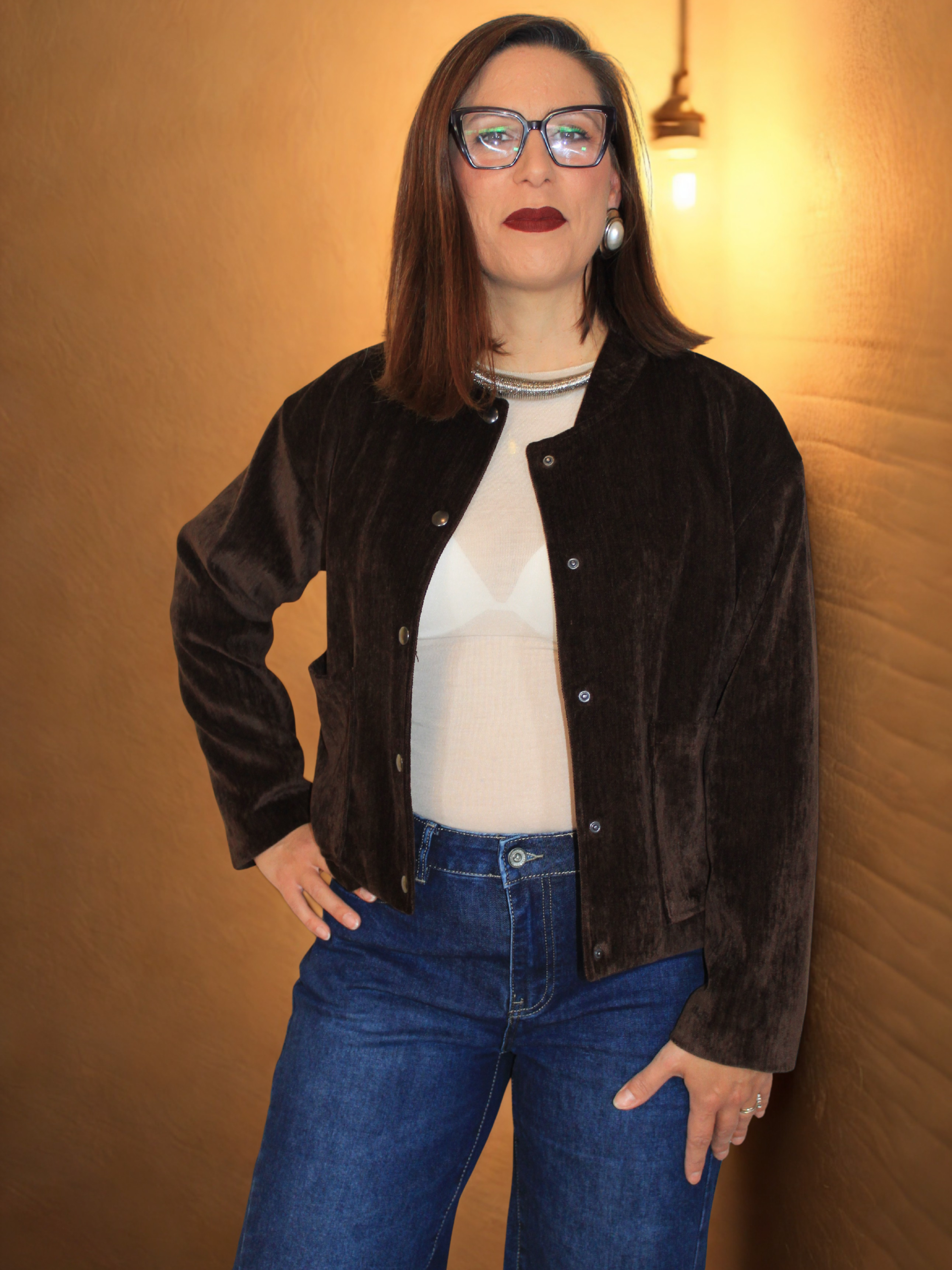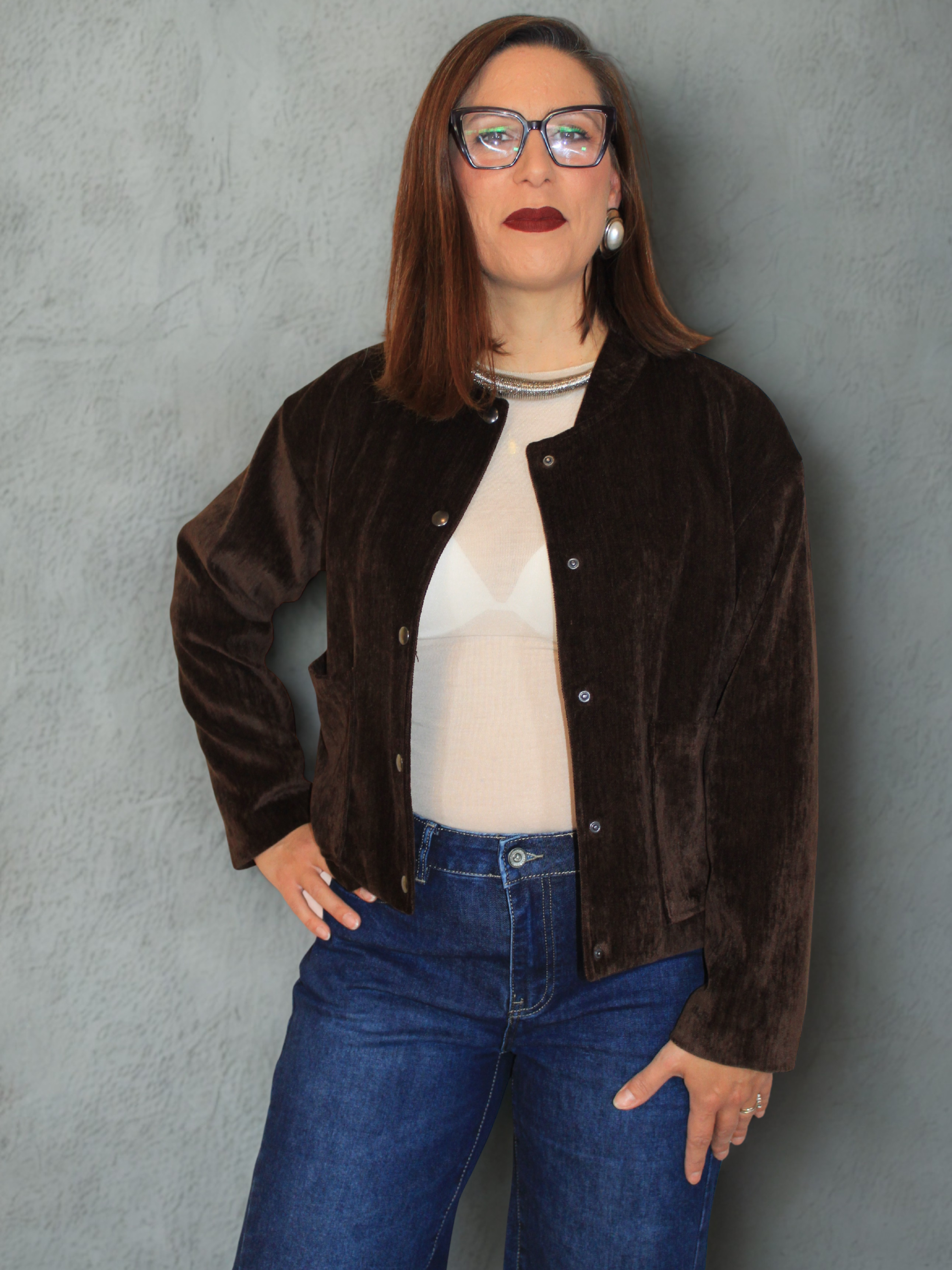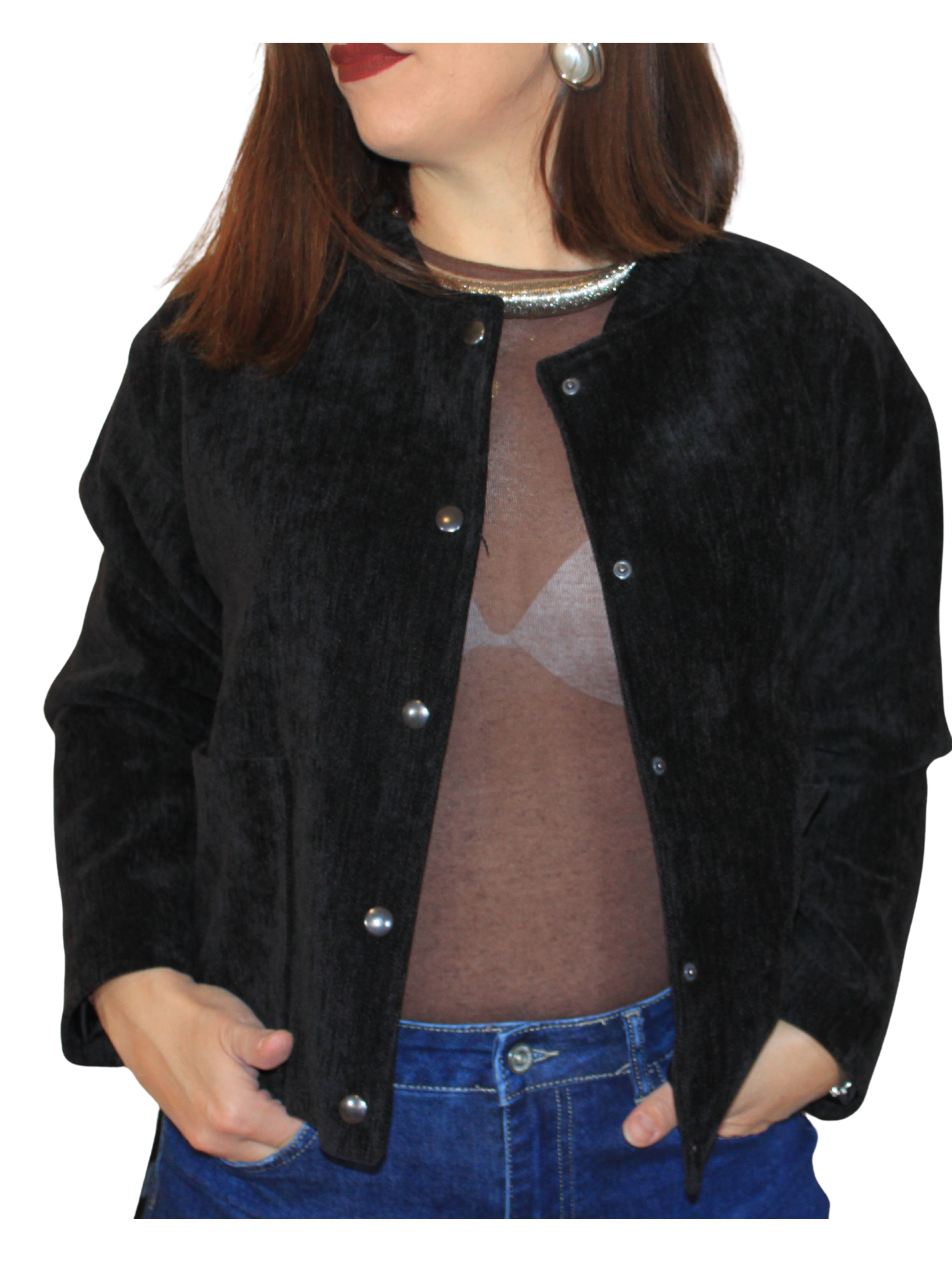 Giacca stile bomber con tessuto effetto velluto e coulisse sul retro.