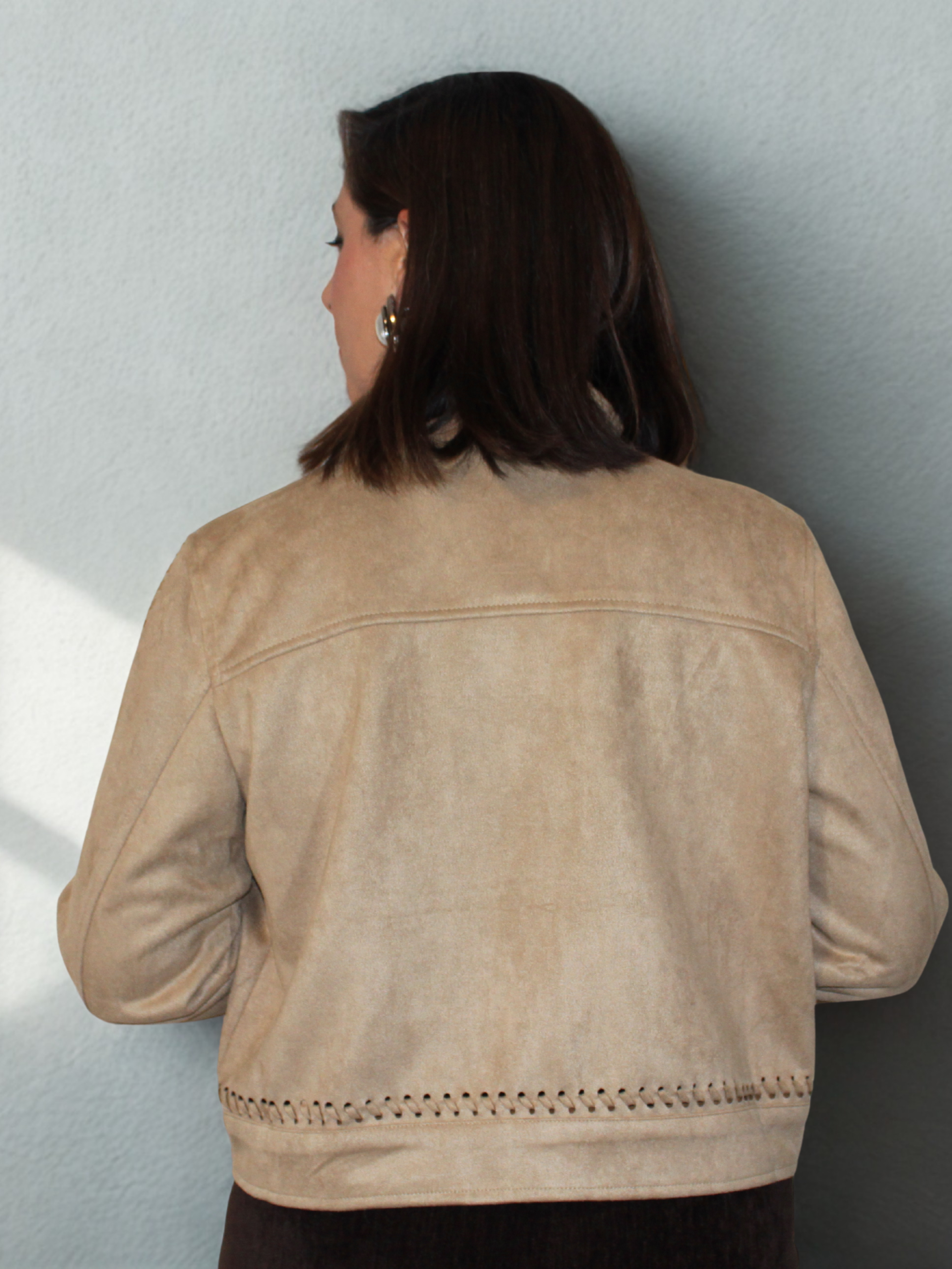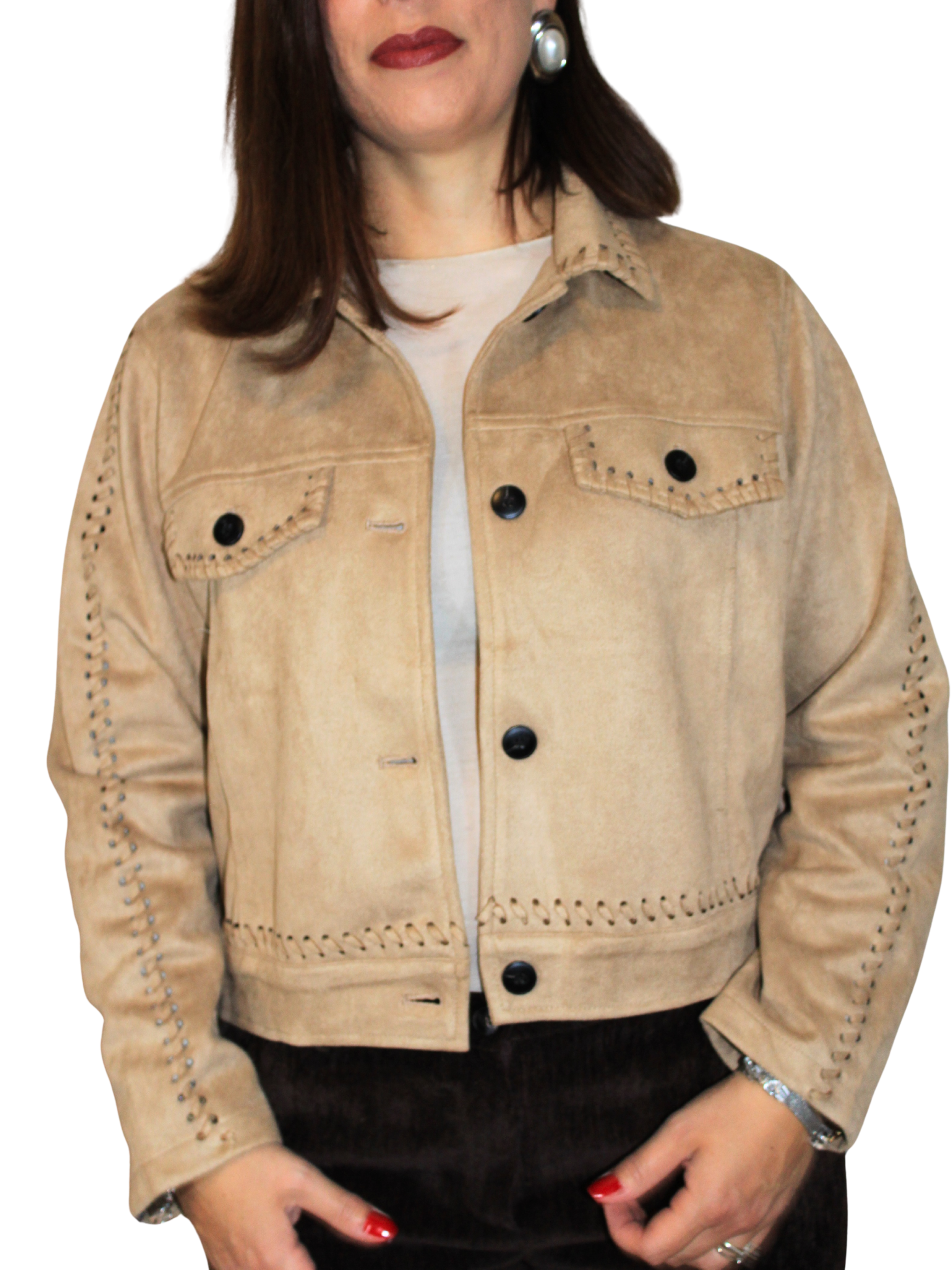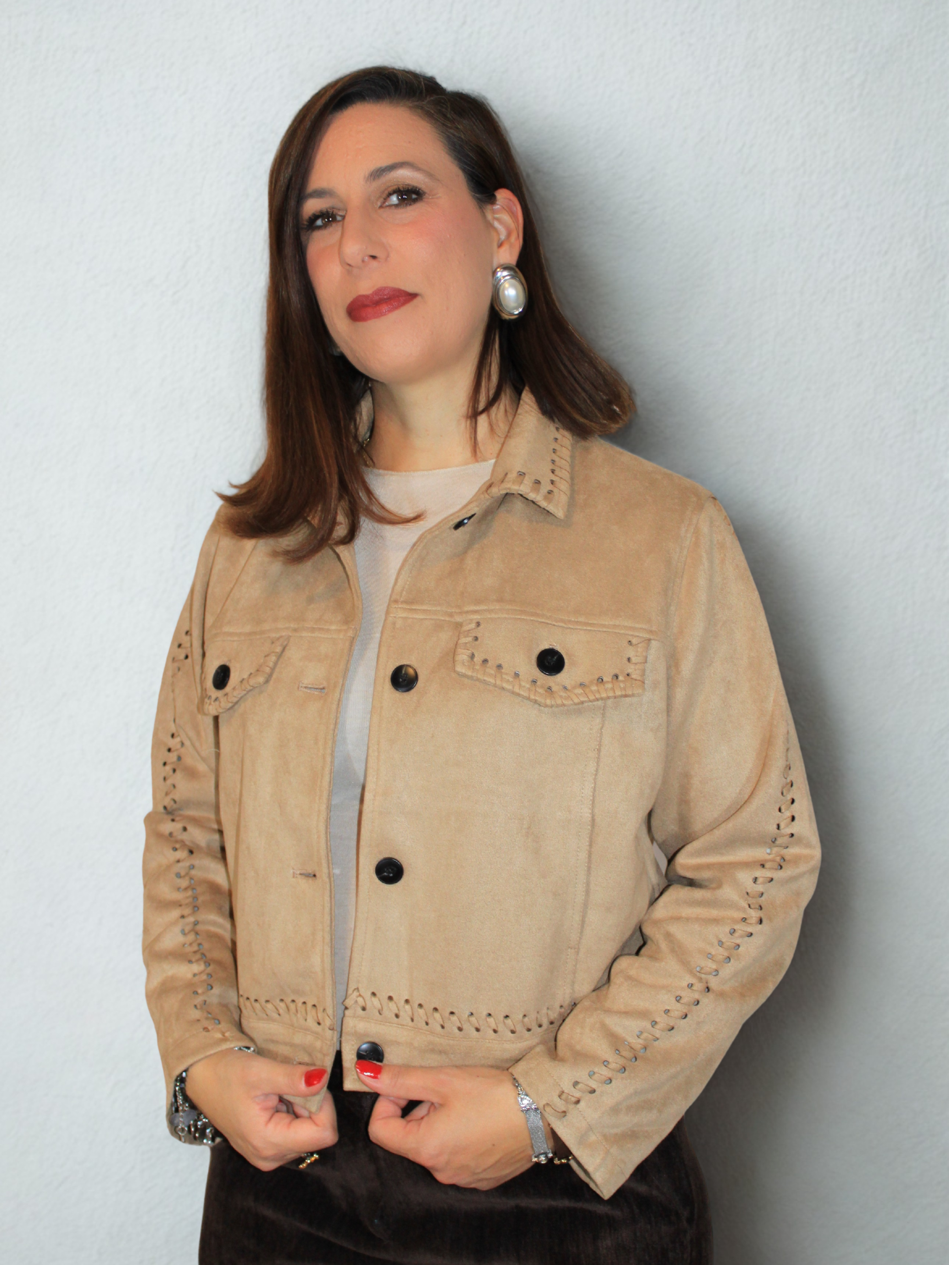 Giacca con bottoni e impunture sul colletto ,sulle maniche ed in vita.