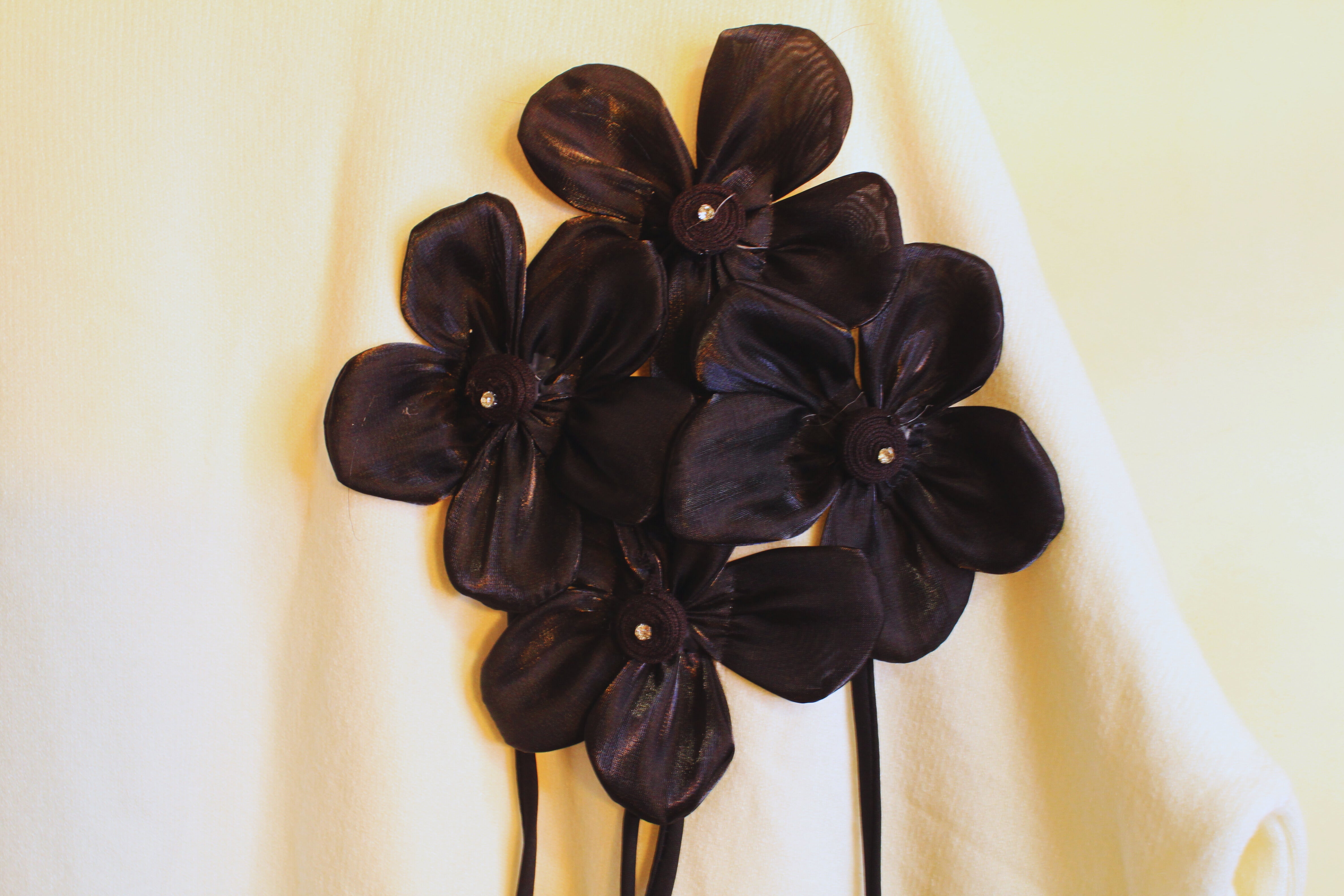 Maglione modello Flowers,morbidissimo ,impreziosito davanti da fiori di tulle e paillettes